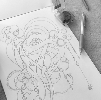 The central motif of this collection was first drawn on paper with a pencil, then refined by retracing the outlines with a fineliner.